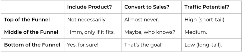 I didn’t say that you should try downloadable content for the funnel’s top as they are not looking for a solution. They won’t subscribe to your email newsletter at their first visit, but as you rank for more and more keywords, they will understand that you create top-notch content.